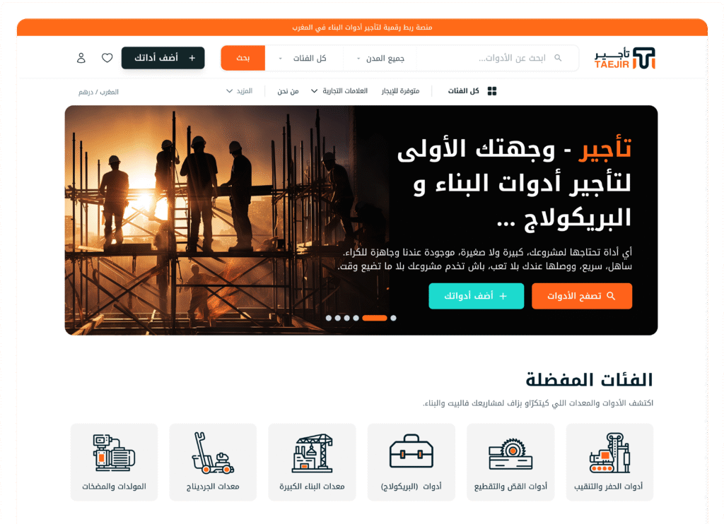 نطوّر منصة رقمية ذكية مخصّصة لكراء أدوات البناء والبريكولاج بالمغرب.